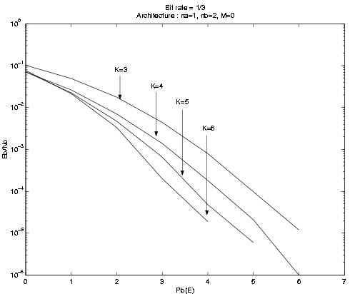 three graphs because I simulate three different bit rate: 1/2, 1/3, 1/4. On each bit